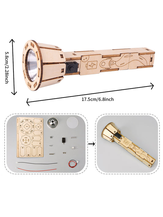 Factory wholesale Music Park 3D Wooden Puzzle Flashlight Model Kits DIY Small Production Set for Electrical Physics Science Experiments