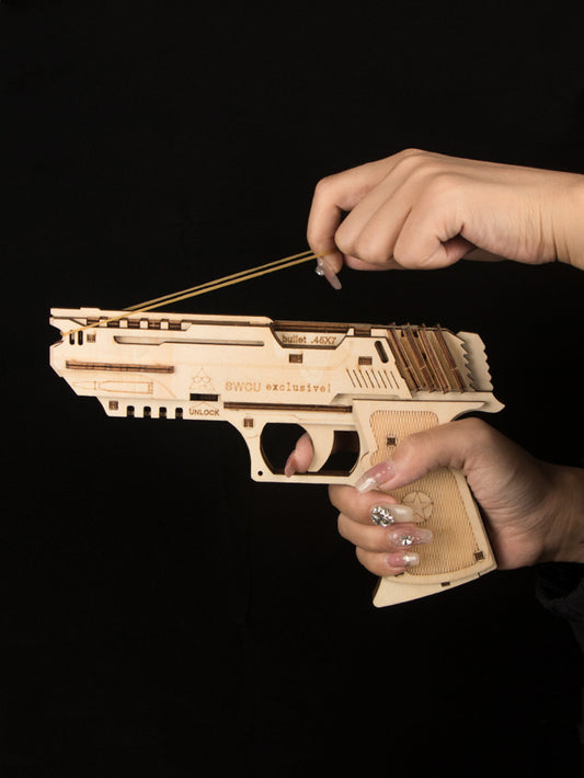 Factory wholesale Music Park 3D Wooden Puzzle Model Building Kit Mechanical Rubber Band Gun Toy DIY Brain Tearer Birthday Gift