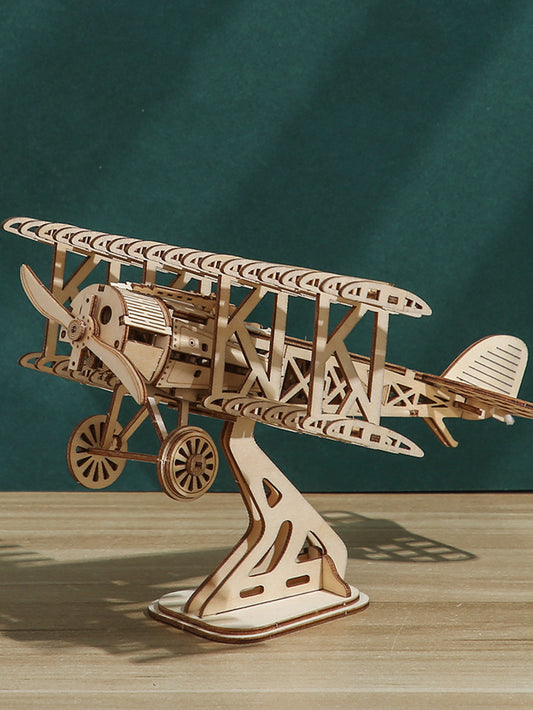 Factory wholesale Music Park 3D Wooden Puzzle Wood DIY Craft Bi-Plane Model kits Handmade Gifts